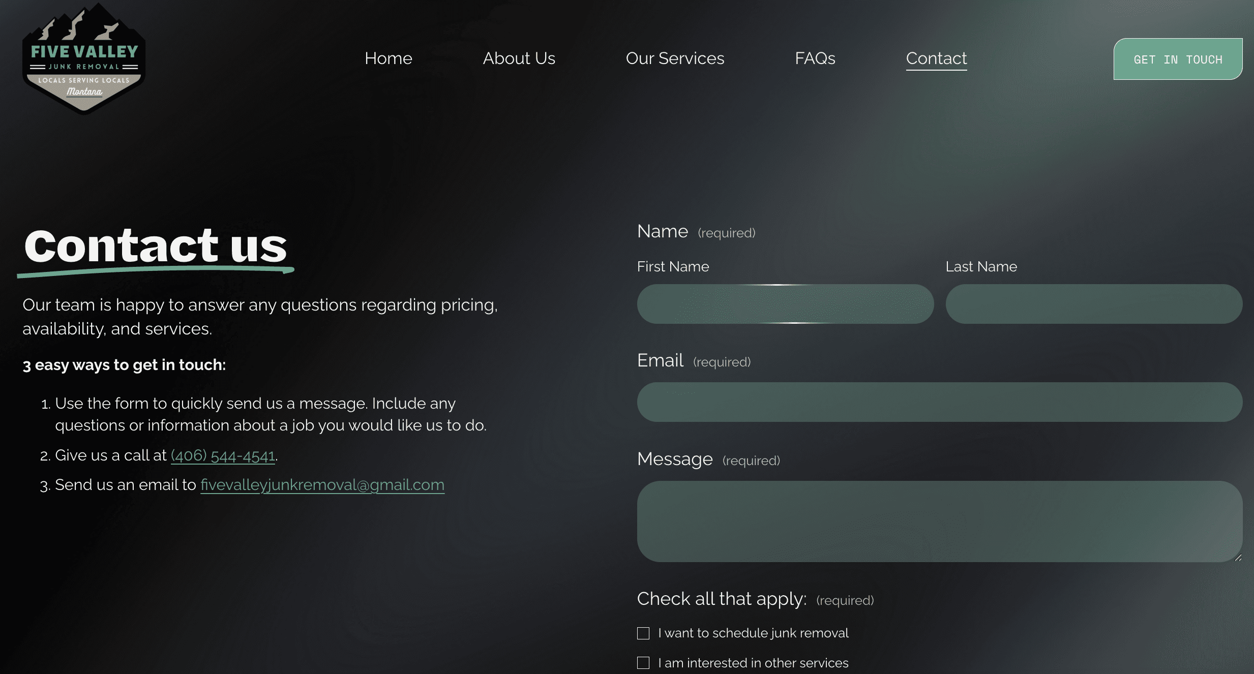 A junk removal company based out of the Missoula, MT area. Offering multiple services and is paired with a storage facility.