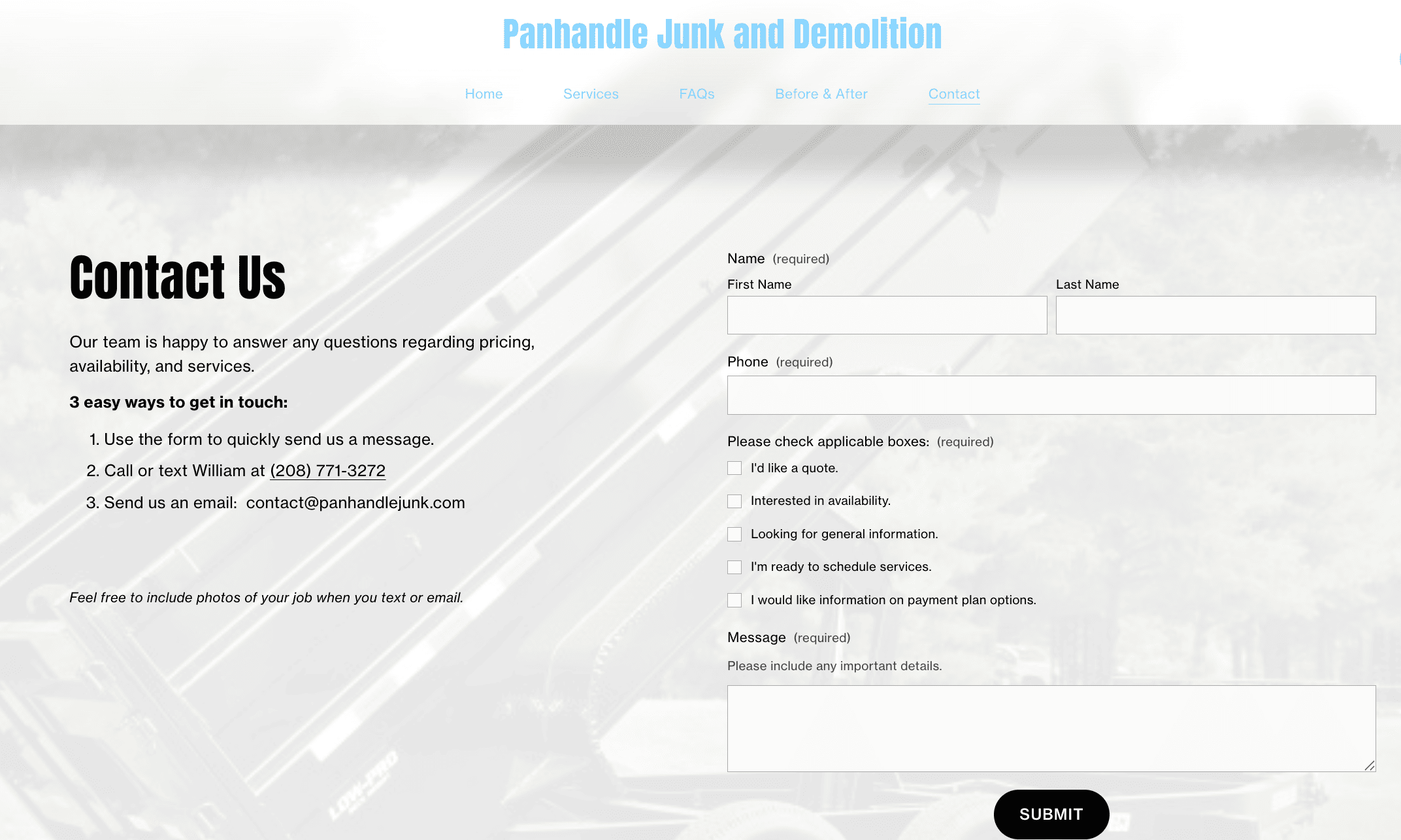 A junk removal and demolition company servicing all of North Idaho. Specializing is residential, commercial, and construction clean up as well as building demolition.